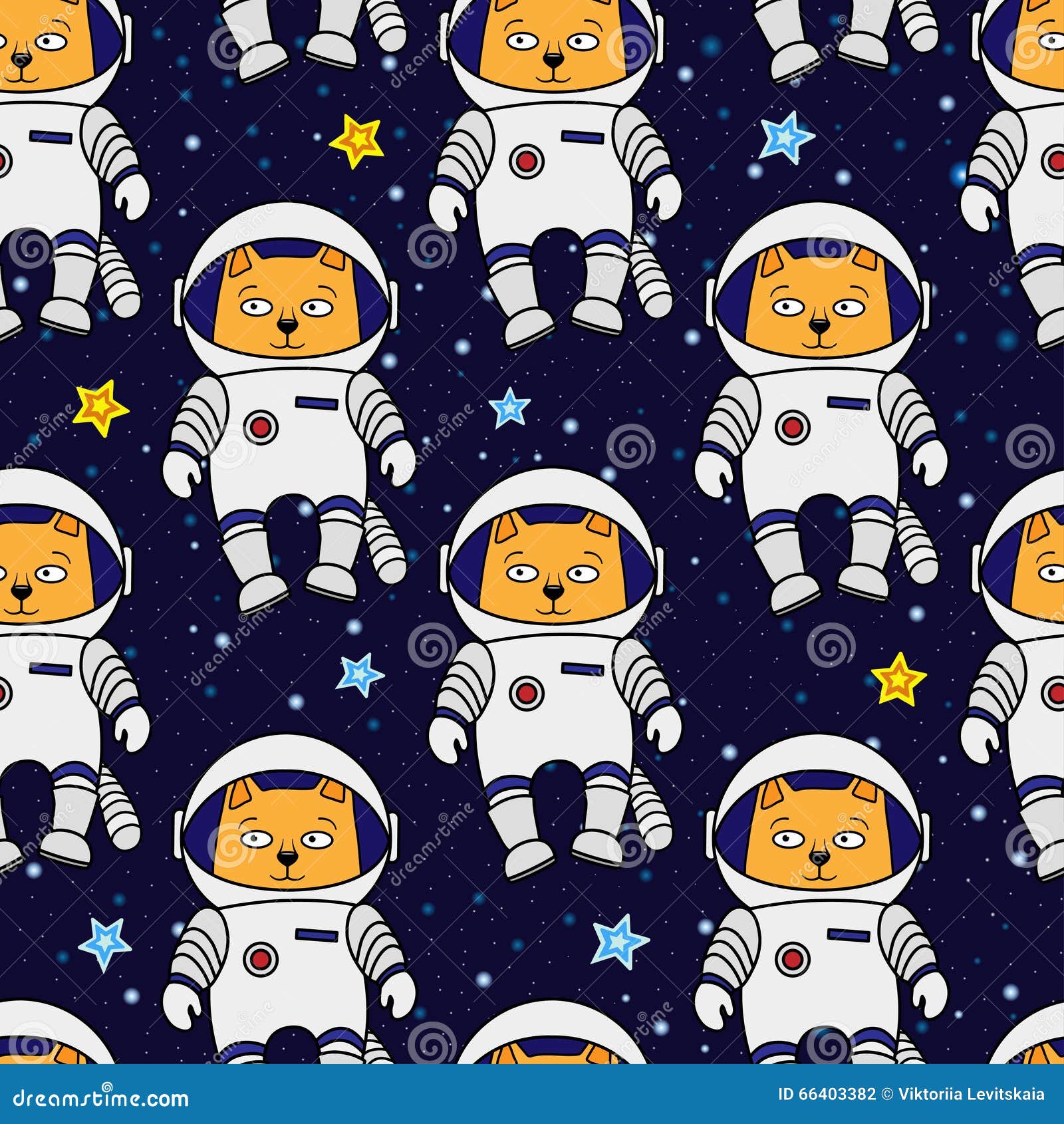 Seamless Cat Astronaut Pattern Stock Vector Illustration Of Cosmonaut Star 66403382